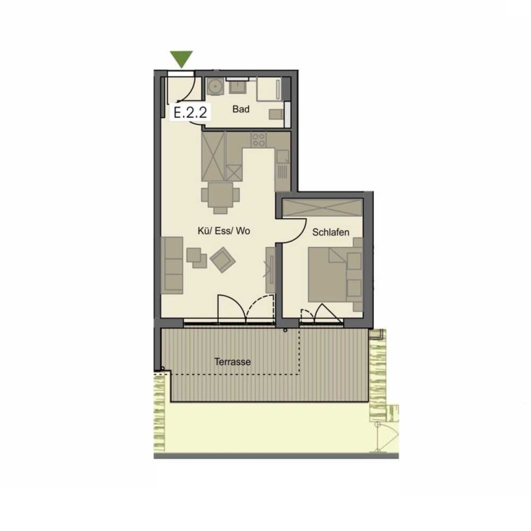 Die nach Südwesten ausgerichtete Anlage überzeugt durch einen unverbaubaren Blick ins Grüne und eine durchdachte Architektur: Erdgeschosswohnungen verfügen über großzügige Terrassen mit Gartenanteil, im Obergeschoss laden überdachte Balkone zum Entspannen ein, und im Dachgeschoss stehen weitläufige Dachterrassen zur Verfügung.