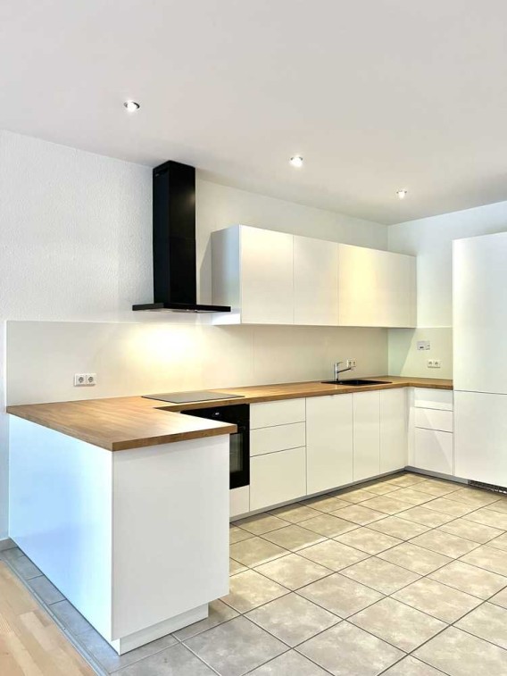Neue Einbauküche mit allen E-Geräten, ideal für Hobbyköche und optimal in die Raumaufteilung integriert. Die Küche ist mit mtl. 75 EUR bereits in der Gesamtmiete berücksichtigt.