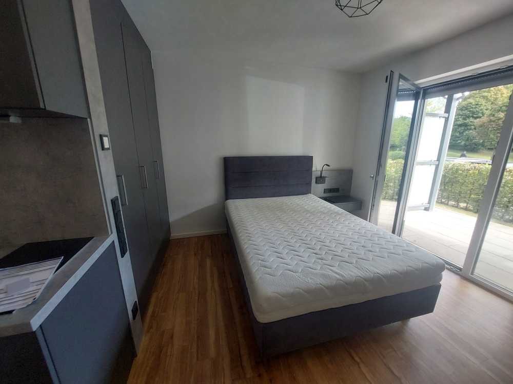 Das voll möbliertes 1-Zimmer Apartment befindet sich im Erdgeschoss eines modernen Gebäudes mit insgesamt 30 Wohnungen für Studenten. Die Einbauküche verfügt über eine Mikrowelle, Herdplatte und Kühlschrank mit Gefrierfach. Die Fenster sind mit elektrischen Rollläden ausgestattet.