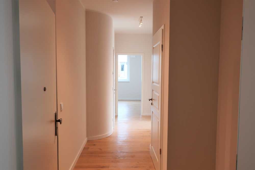 Mit dem Aufzug gelangen Sie in das 2. Obergeschoss. Hier befindet sich der untere Teil der Maisonette-Wohnung. Der Masterbedroom hat einen großen Balkon, ausreichend Platz für eine Ankleide und ist mit einem Bad en Suite ausgestattet. Es folgt ein weiteres Zimmer, ein Gäste-Duschbad und der Hauswirtschaftsraum mit dem WM-Anschluss und Staumöglichkeit. Die interne Treppe bringt Sie in den oberen Teil des Apartments. Hier erwartet Sie eine offene Wohnlandschaft mit Küchen- und Essbereich. Gleichzeitig haben Sie von hier aus Zugang auf die sonnige Dachterrasse mit Südausrichtung.