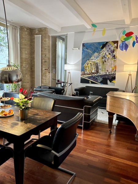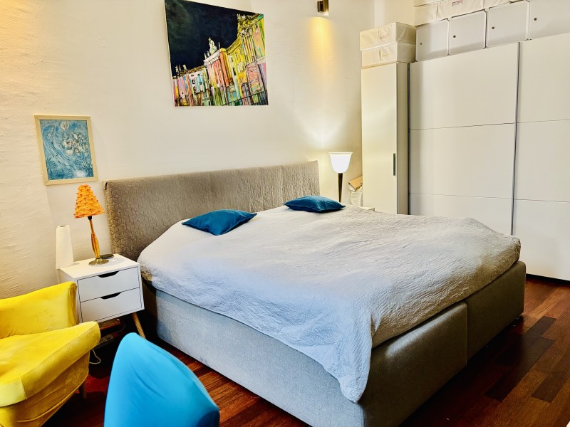 Beautiful loft apartment (100 sqm, 2 rooms) with private garden facing a sunny courtyard. Renovated former factory with 3.8 m ceilings, floor-to-ceiling windows, open-plan kitchen, bathroom with bathtub, shower & bidet. Fully furnished, stylish and ready to move in.