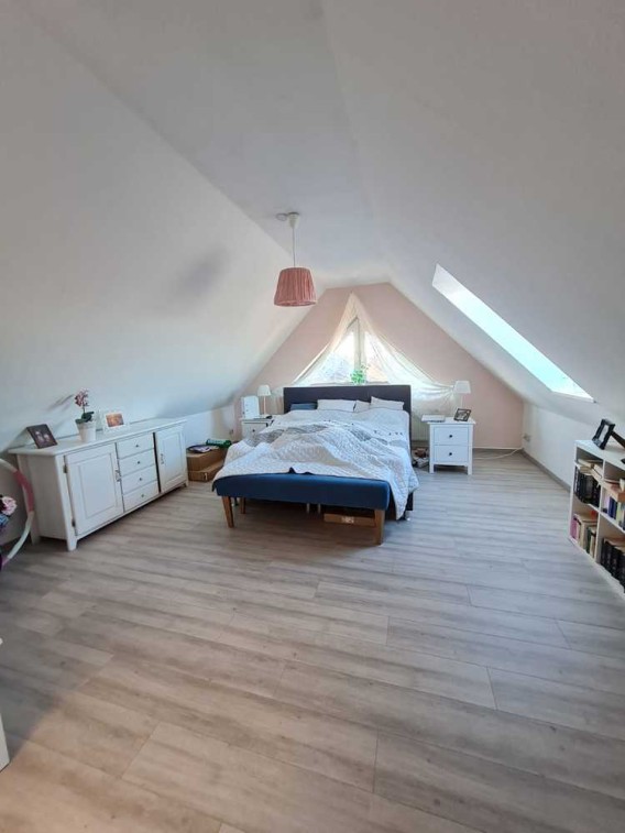 Im 1. Obergeschoss befinden sich zwei Zimmer, während Ihnen im 2. Obergeschoss ein großzügiges Dachstudio mit angeschlossenem Ankleidezimmer zur Verfügung steht.