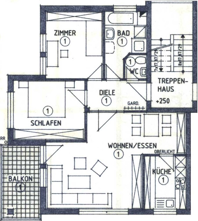 Die Wohnung liegt im 1. Obergeschoss des hausmeisterbetreuten Mehrfamilienhauses mit insgesamt 6 Wohneinheiten.