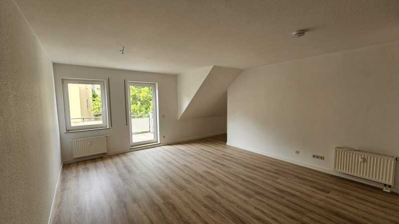 Gemütliche 2-Zimmer-Dachgeschosswohnung mit großem Balkon und Ausblick Richtung Meißen