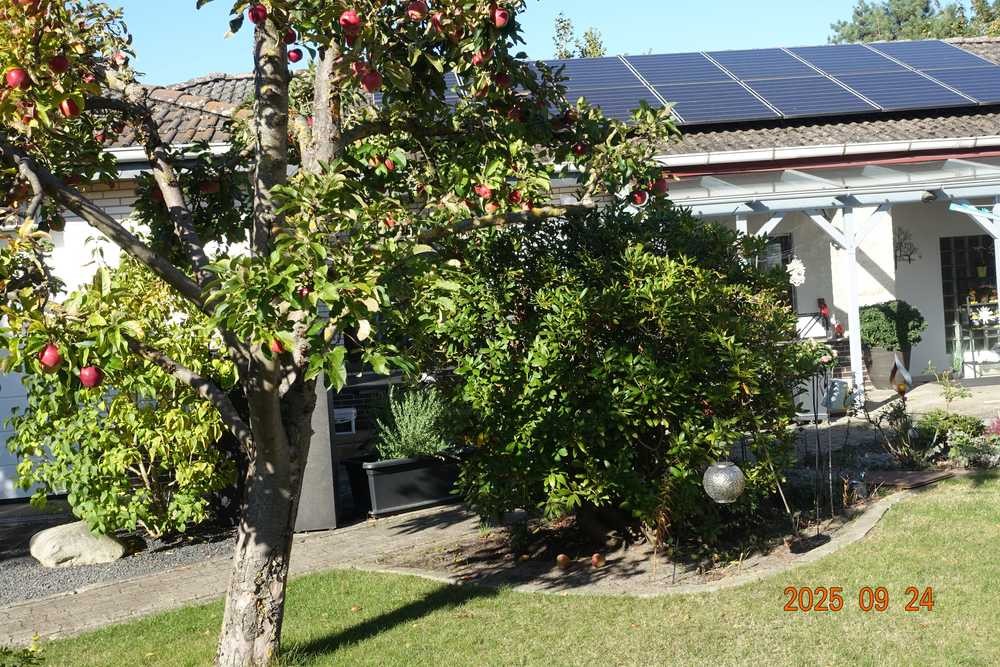 Das Haus liegt in einer ruhigen Straße - wie ein Gartenhaus - etwas zurückgesetzt von der Straße mit einer angebauten Doppelgarage. Das Haus ist fast ebenerdig mit einer windgeschützten Terrasse nach Süden.
