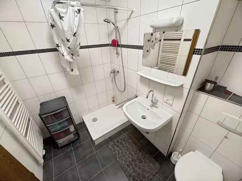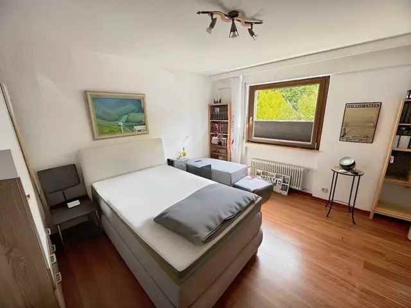 Das Schlafzimmer ist ruhig gelegen und schafft eine behagliche Rückzugsmöglichkeit. Das Tageslichtbad wurde 2015 modernisiert und ist mit einer Badewanne ausgestattet, wodurch es sowohl funktional als auch komfortabel wirkt.