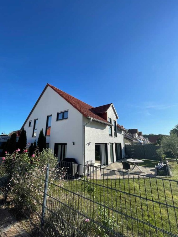 Die Immobilie wird über eine energiesparende Wärmepumpe beheizt, was für angenehme Wärme und niedrige Heizkosten sorgt. Der gepflegte Garten bietet genügend Platz zum Spielen und Entspannen. Die Doppelhaushälfte befindet sich in einer ruhigen Wohngegend. Insgesamt handelt es sich um ein modernes und familienfreundliches Zuhause, das allen Ansprüchen gerecht wird.