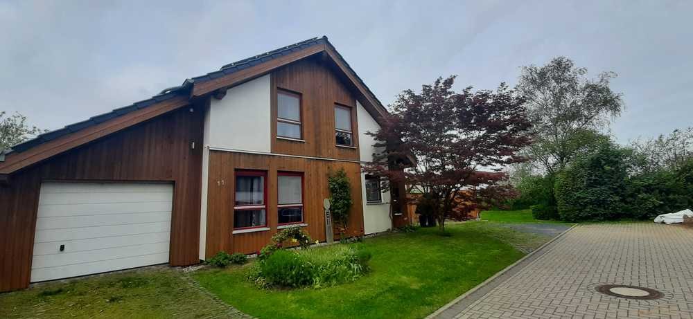 Zur Vermietung steht ein gepflegtes, freistehendes Einfamilienhaus aus dem Baujahr 2003. Der kathedralenartige, großzügige Wohnküchenbereich mit echtholzboden macht die Immobilie zu einem besonderen Wohnerlebnis. Genießen Sie die Wärme des Kaminofen in der kalten Jahreszeit. Mit insgesamt 5 Zimmern, darunter drei Schlafzimmer einem großzügigen Wohn- und Essbereich, sowie einem Hauswirtschaftsraum mit direktem Zugang zum Garten und der Garage, bietet die Immobilie Raum zum Leben. Die Raumaufteilung ist modern und familienfreundlich.