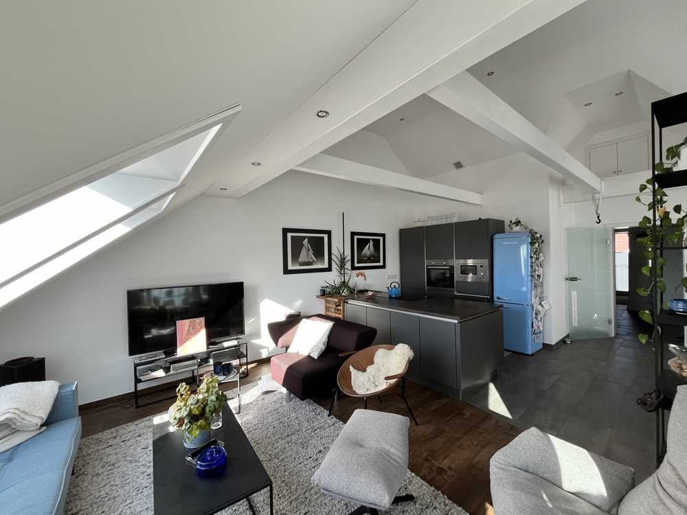 • Lichtdurchfluteter Wohn-/Essbereich mit Dachschrägen & Sichtbalken