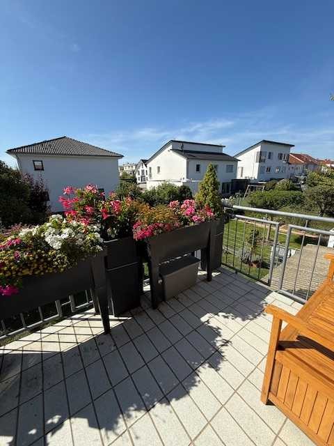 Die helle und großzügige 3-Zimmer-Maisonette-Wohnung befindet sich im 1.0G und DG (=2.0G) eines modernen und sehr gepflegten 3-Familienhauses aus dem Baujahr 1996.Die Wohnung ist in allen Bereichen komplett neu möbliert und ausgestattet. Sie benötigen nur noch Ihren Koffer mit Kleidung. Auf der unteren Wohnebene im 1. OG betreten Sie die Wohnung über einen zentralen Flur, der zu einem lichtdurchfluteten Wohn-Essbereich mit Zugang zum Balkon (Richtung Garten gelegen und mit Markise ausgestattet) und zu einer geräumigen Küche mit dahinter liegendem Vorrats-/Abstellraum führt. Die Wohnung ist in allen Bereichen komplett ausgestattet. Die Elektrogeräte der abgebildeten Einbauküche sind neu. Im Flur ist des Weiteren ein praktisches Gäste-WC untergebracht. Über eine Treppe gelangen Sie zur Wohnebene im Dachgeschoss. Hier verteilen sich über eine zentrale Diele die Räumlichkeiten auf ein geräumiges Schlafzimmer (Richtung Garten gelegen), ein Arbeits- oder Kinderzimmer sowie ein großes Tageslicht-Bad mit Badewanne und Dusche. In der Diele befindet sich der Zugang zum Spitzboden, der zusätzlichen Stauraum bietet.