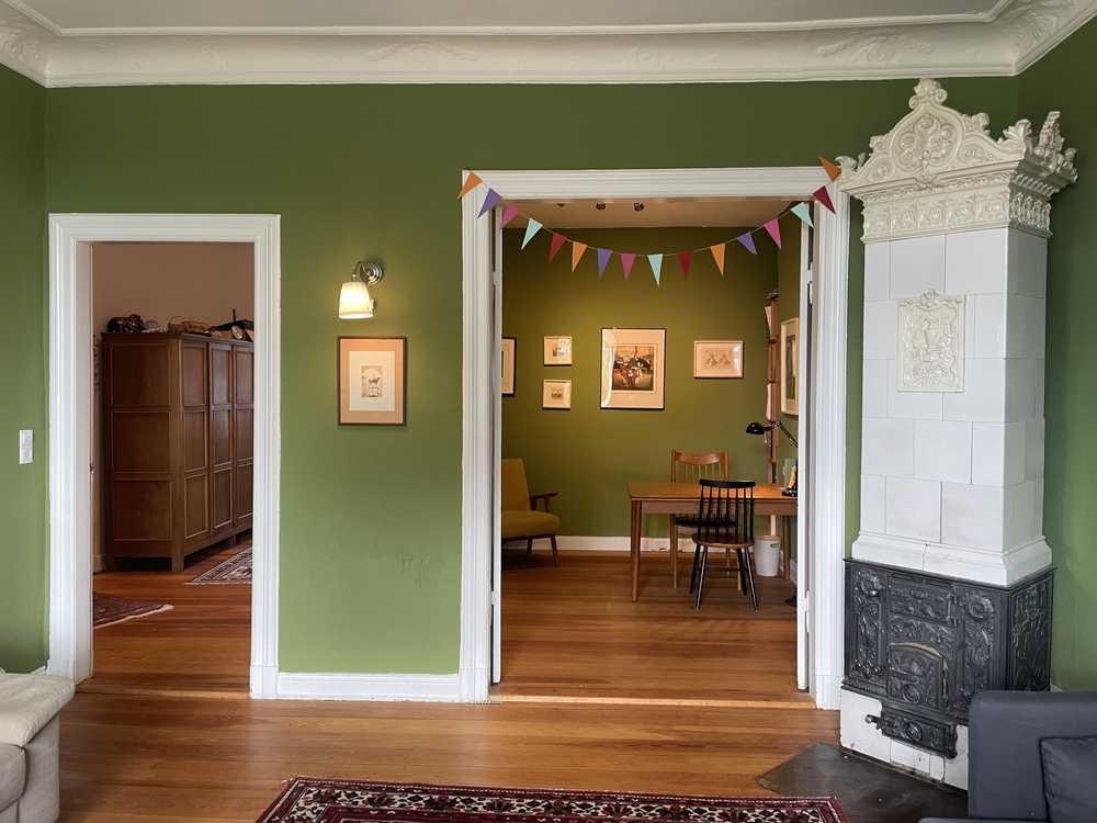 • Großes Wohnzimmer mit antikem Jugendstil-Kachelofen (funktioniert)