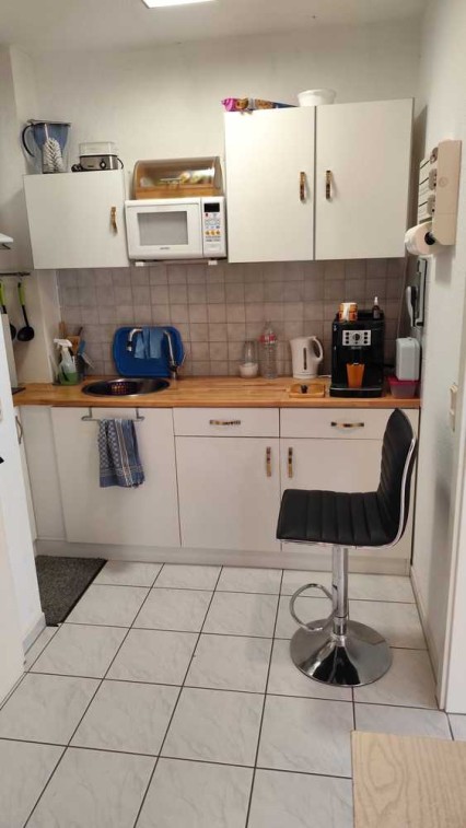 die Wohnung wird komplett mit Möbeln und Einbauküche/Waschmaschine/Trockner an NR vermietet.