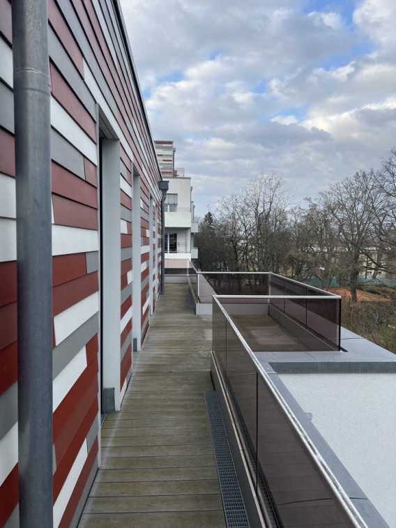 Dachterrasse mit Glasgeländer, die zum Sonnen und Verweilen