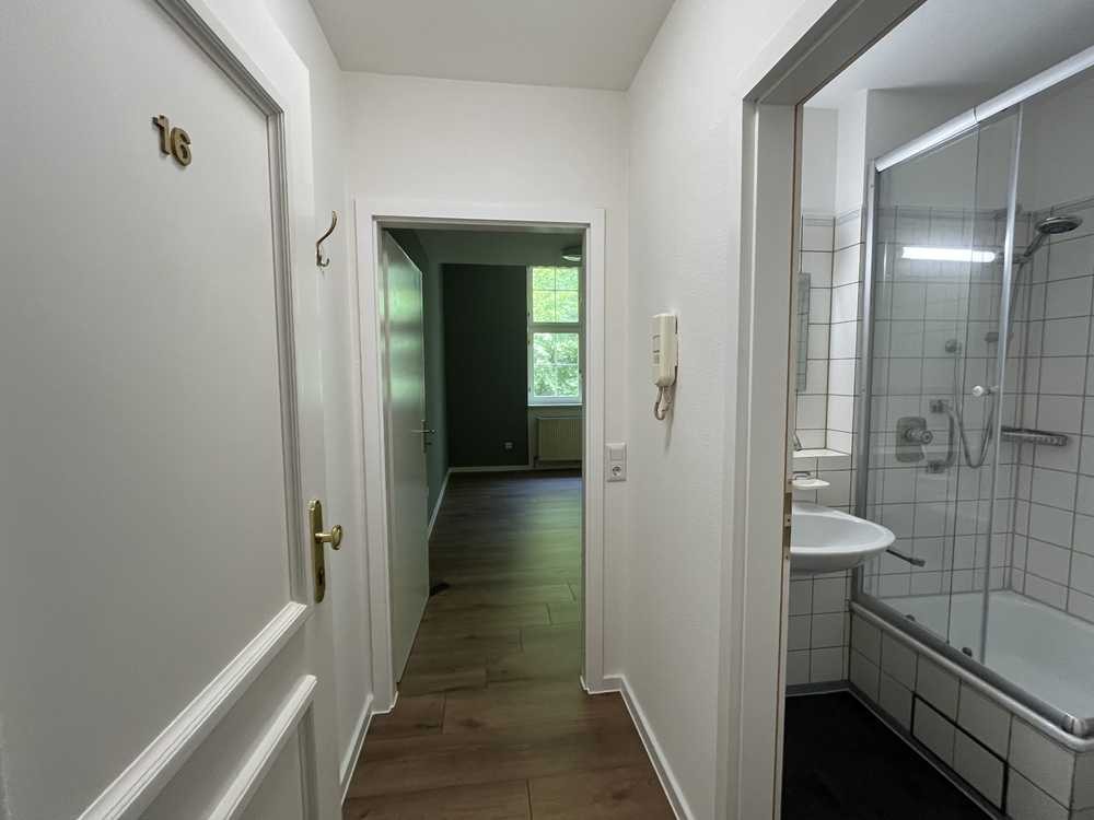 Die Wohnung wurde frisch saniert. In der Wohnung wurde neuer Laminatboden verlegt, frisch gestrichen, ein neuer Vinylboden wurde im Bad verlegt, neue Duschkabine. Eine neue Küche wird noch vor Einzug eingebaut mit Cerankochfeld, Spüle und Kühlschrank.