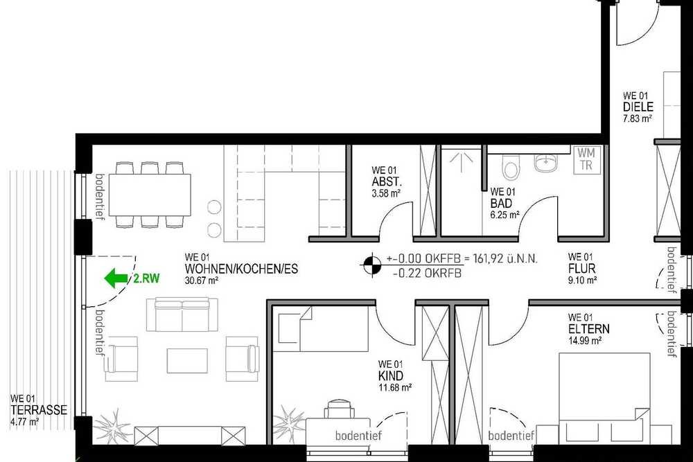 Ein TG-PKW Stellplatz kann gegen einen Aufpreis von 70,00€ gemietet werden.