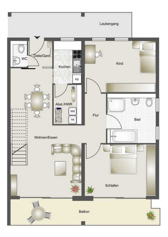 Auf dem am Wohnbereich angrenzenden Balkon können Sie jederzeit die frische Luft und die Sonne genießen.