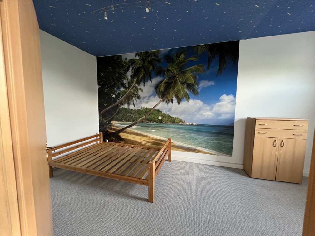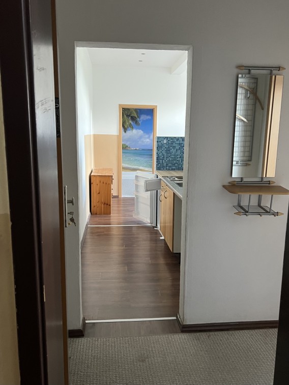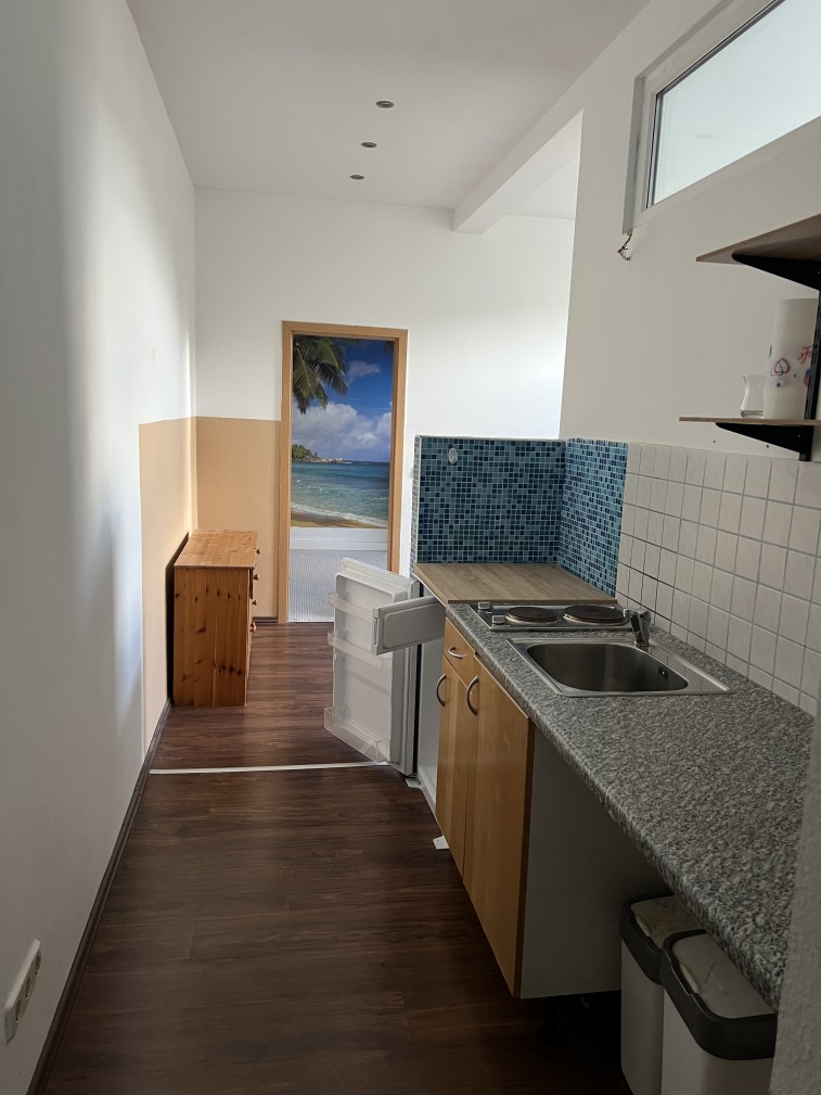 Vorhandene Möbel ( Bettgestell(ohne Matratze), kleine Kommode, Küchenschrank mit 2 Herdplatten, Kühlschrank) können bei Interesse übernommen werden.