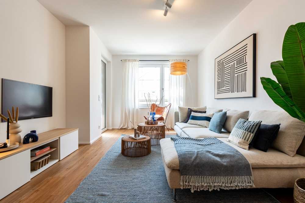 Die Neubau-Wohnungen sind nach Osten, Süden oder Westen ausgerichtet und bieten so zu jeder Tageszeit viel natürliches Licht und Wärme. Die Wohnungen sind effizient gestaltet, mit gut durchdachten Grundrissen, die viel nutzbare Fläche schaffen. Das Haus wurde nach energetischen Gesichtspunkten gebaut und im Oktober 2024 fertiggestellt.