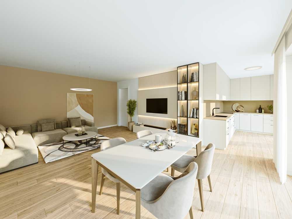 Es handelt sich um eine moderne ca. 76 m² große 3-Zimmer-Wohnung mit eigener Terrasse und einem eigenen Garten, der zum Entspannen und Genießen einlädt. Die offene Küche grenzt direkt an das helle Wohnzimmer und schafft eine freundliche, großzügige Atmosphäre.