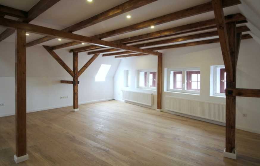 Auf zwei Ebenen verteilt bietet die Wohnung vier lichtdurchflutete Zimmer mit einer modernen, offenen Raumgestaltung. Hochwertige Materialien, stilvolle Böden und eine zeitgemäße Ausstattung prägen das wohnliche Ambiente. Die großzügige Raumaufteilung verleiht der Wohnung einen loftartigen Charakter, der sowohl Singles, Paaren als auch kleinen Familien einen besonderen Wohnkomfort bietet.