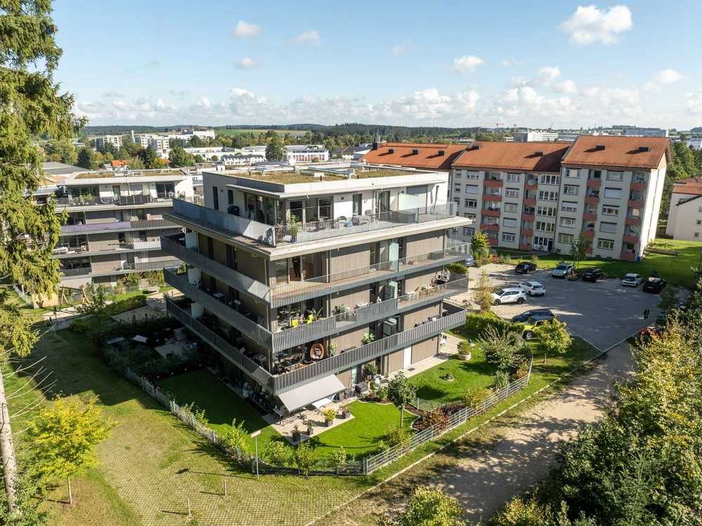 Diese hochwertige Wohnung besticht durch ihre einmalige Lage direkt am Traunreuter Stadtwald und bietet einen unverbaubaren Blick ins Grüne. Sie befindet sich im 3. Obergeschoss eines modernen Wohngebäudes und ist dank ihrer Süd-/Westausrichtung lichtdurchflutet und uneinsehbar. Ein Aufzug führt Sie komfortabel von der Tiefgarage direkt bis zur Wohnung.