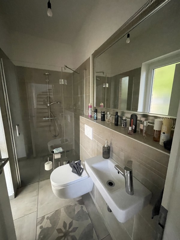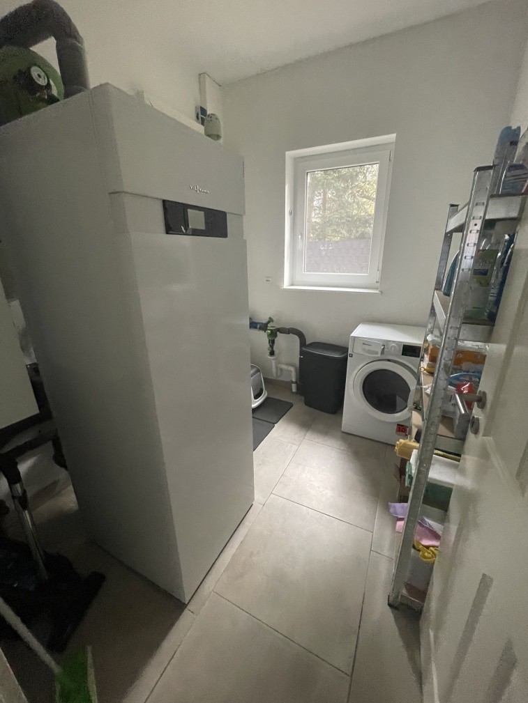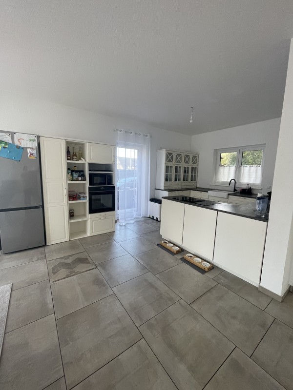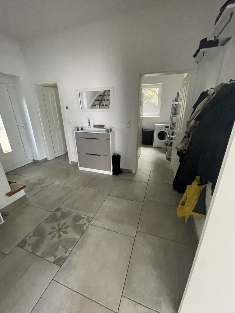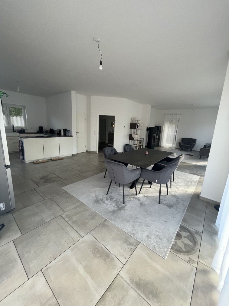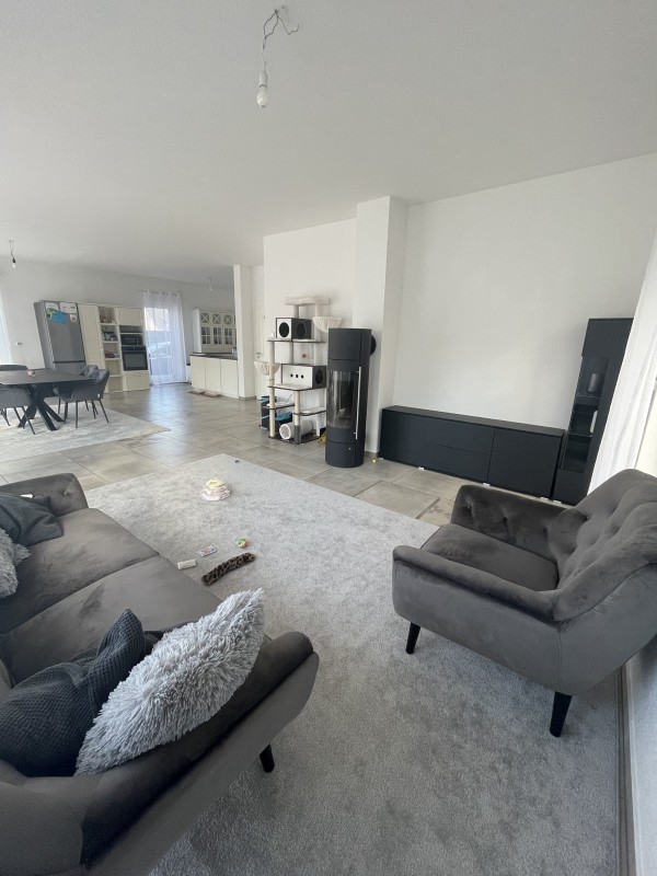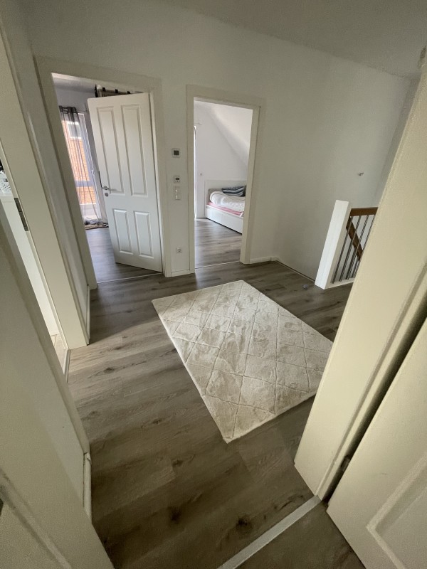 Im Flur anliegend sind Abstellraum und ein Gäste-WC. Alle Fenster sind mit automatischen Rollos versehen. Überall wird über Fußbodenheizung gewärmt. Neben den zwei Stellplätzen neben dem Haus, gehört eine Doppelgarage, welche mit vermietet werden kann.