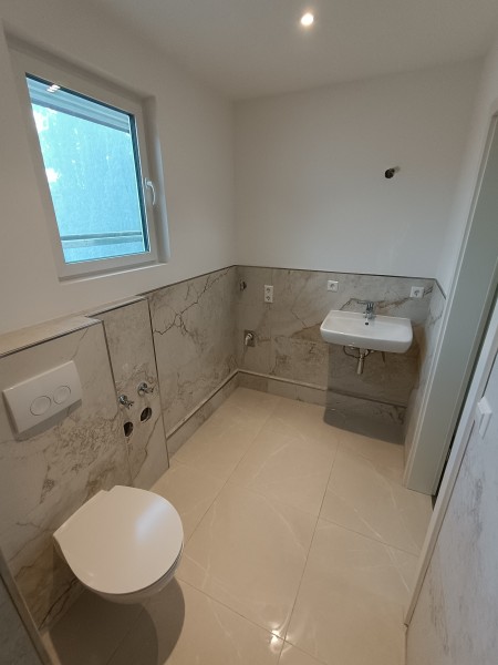 Ein modernes Gäste WC mit Tageslicht ist ebenfalls vorhanden und erreichbar über den Flur. Aus der Küche heraus gelangen Sie an den Balkon. Eine Einbauküche ist in Eigenregie.