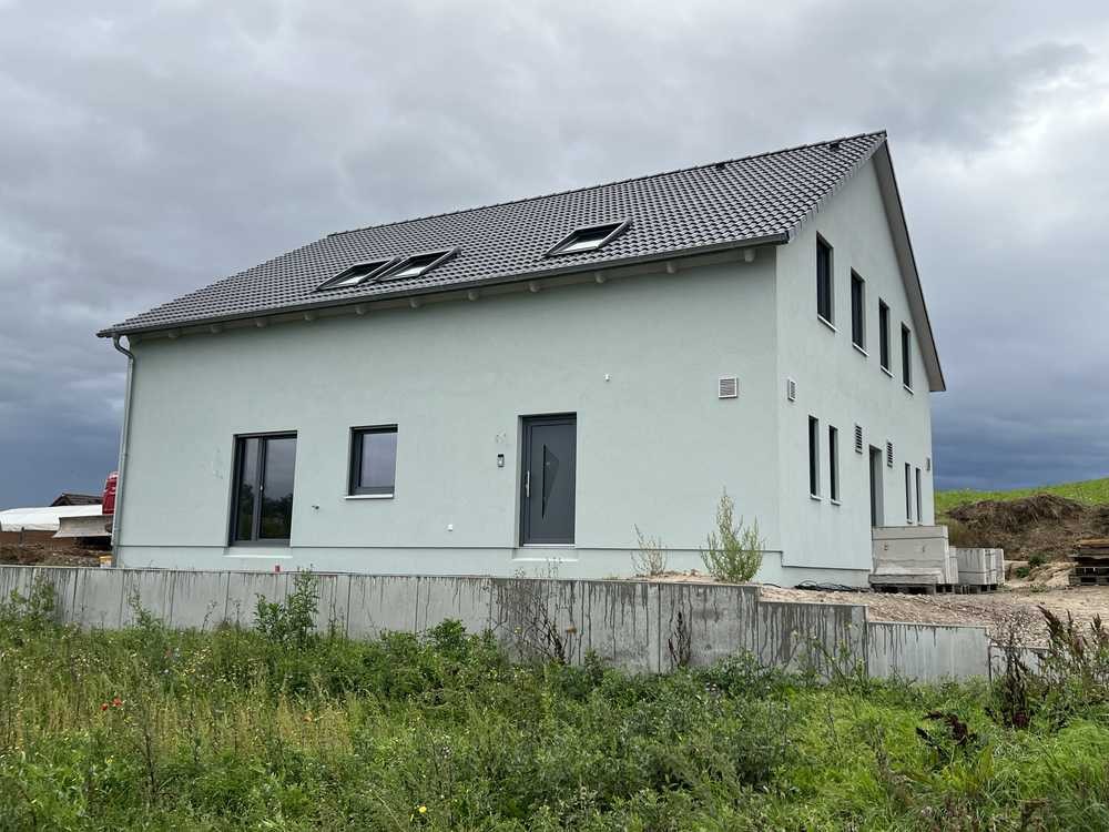 Bei dieser ansprechenden Immobilie handelt es sich um einen Erstbezug in eine zweistöckige Doppelhaushälfte. Das Haus besticht durch eine gehobene Innenausstattung und kann ab dem 1.12.2025 bezogen werden. Zu der Immobilie zählen 3 Schlafzimmer, ein Badezimmer, eine Abstellkammer, ein Hauswirtschaftsraum, ein Gäste WC, eine Küche sowie ein offenes Wohn- und Esszimmer. Auch das dazugehörige Grundstück lässt durch seine Großzügigkeit keine Wünsche offen. Ob Blumenstauden, Hochbeete für die Gemüsezucht oder Platz für die Kinder zum Spielen: Auf 300 Quadratmetern ist alles möglich. Zum Objekt gehören Annehmlichkeiten wie eine Einbauküche und 2 Stellplätze. Das Haus wurde 2025 erbaut und befindet sich in einer Sackgasse/Feldrandlage. Es ist ausgestattet mit einer Luft-Wasser-Wärmepumpe und einer PV Anlage. Das Haus wurde nach mit einer Energieeffizienzklasse KFW 40 QNG gebaut.