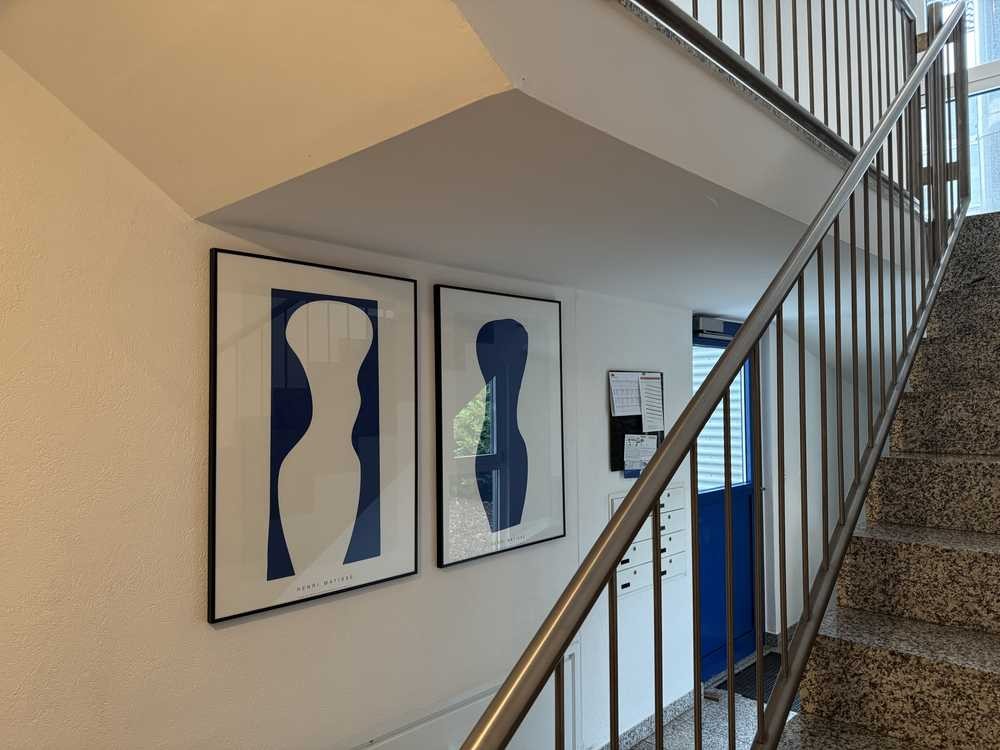 Schon das außergewöhnlich helle Treppenhaus mit Natursteinböden, Edelstahlgeländer und Ihrem eigenen, abgeschlossenen Kellerabteil schafft eine einladende Atmosphäre und lädt zum Wohlfühlen ein.
