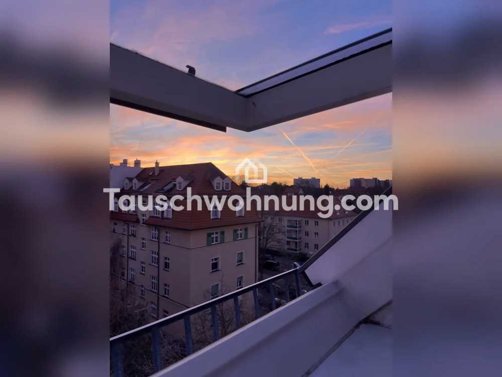 Mein Freund und ich sind auf der Suche nach einer Wohnung in der Neustadt, Hecht, Leipziger und Radeberger Vorstadt. Im Tausch bieten wir unsere sonnige und ruhige Dachgeschosswohnung in Strehlen, unmittelbar vom großen Garten entfernt. Einkaufsmöglichkeiten sowie öffentliche Verkehrsmittel sind innerhalb von 5 Minuten erreichbar. Von unserem Dach kann man die wunderschönsten Sonnenuntergänge beobachten.