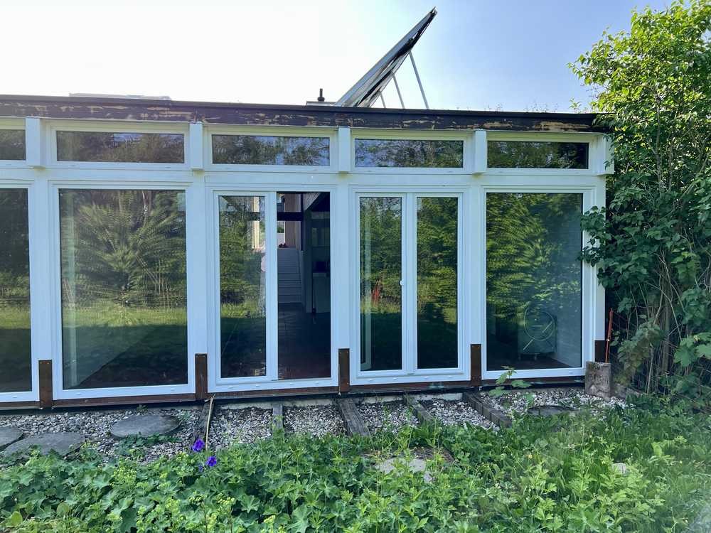Dieses 1976 erstellte Architektenhaus mit bodentiefen Glasfenstern wurde umfassend saniert und kann ab dem 16.11.25 bezogen werden. Die Doppelhaushälfte zeichnet sich durch eine gehobene Innenausstattung aus. Die letzte Modernisierung fand im Jahr 2023 statt.