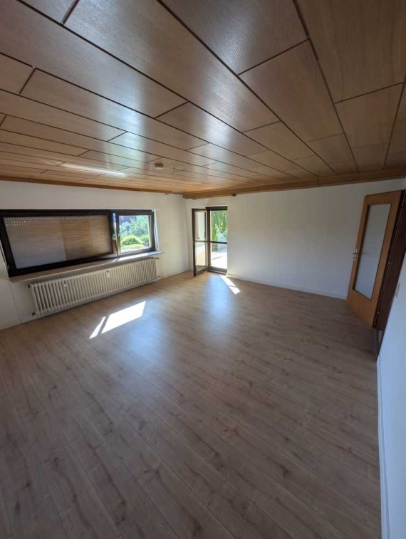 Wohnzimmer: Großzügig geschnitten und lichtdurchflutet-wird noch gestrichen.