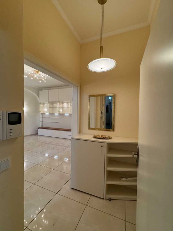 Die teilmöblierte Wohnung hat Steinfußböden mit Fußbodenheizung. Das Schlafzimmer und die Bibliothek sind mit Parkett ausgestattet und werden durch Wandheizkörper geheizt. Im Wohnzimmer, Schlafzimmer und in der Bibliothek sind hochwertige Einbaumöbel verbaut. In allen Räumen sind formschöne und zweckmäßige Lampen angebracht. Ein besonderes Highlight ist der Balkon, der zum Entspannen einlädt. Die Wohnung verfügt über eine Einbauküche und ein Gäste-WC, was den Wohnkomfort erhöht. Ein Aufzug erleichtert den Zugang zu allen Etagen des Gebäudes, das über drei Stockwerke verfügt. Die Wohnung wird ab dem 03.11.2025 verfügbar sein. Haustiere sind nach Absprache erlaubt.