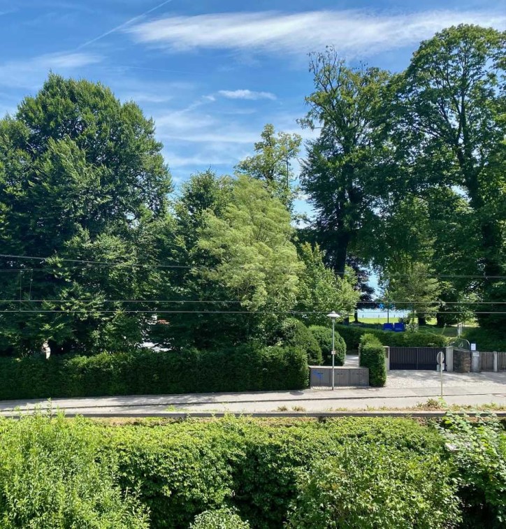 Helle großzügige 2 Zimmer-Wohnung (65qm) frisch renoviert, mit grossem Balkon und Panoramafenster mit Seeblick, Garage plus Abstellplatz können zugemietet werden (120,- € pro Monat), großer Keller, geschlossener Fahrradraum, Gartenmitbenutzung in Mehrfamilienhaus, 1. Stock.