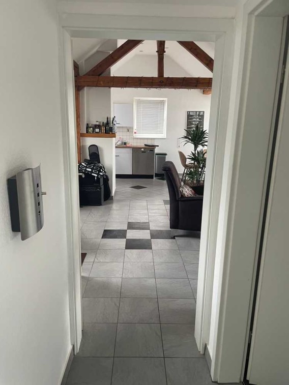 Diese attraktive Wohnung liegt im zweiten Stock eines 3-Parteien Hauses. Sie kann zum 01.01.2026 bezogen werden. Durch Freilegung des Dachstuhls ist ein geräumiger Wohn-, Küchen-, Ess- und Arbeitsbereich mit erstaunlicher Deckenhöhe entstanden. Die vielen, großen Fenster sorgen für reichlich Lichtdurchflutung. Die Rolläden und Sonnenrollos in Kombination mit der neuen Klimaanlage sorgen selbst im Hochsommer für angenehme Temperaturen. Ein aktueller Energieausweis liegt zur Besichtigung vor, die letzte Modernisierung fand im Jahr 2025 statt und sichert niedrige Energiekosten. Ihnen stehen außerdem ein Kellerraum und auch der Spitzboden als Lagerräume zur Verfügung. Eine bereits eingebaute Küche mit maßgefertigten Einbauschränken sorgt für viel Stauraum.