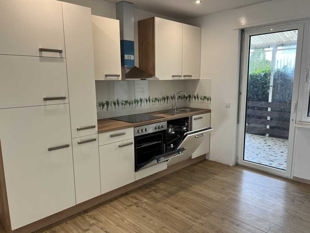 Die Küche ist mit einer neuen Einbauküche ausgestattet – inklusive Backofen, Spülmaschine, Kühlschrank und Gefrierschrank. Von hier aus gelangen Sie in das großzügige Wohnzimmer mit viel Tageslicht und auf den überdachten Balkon, den Sie gemütlich gestalten können.