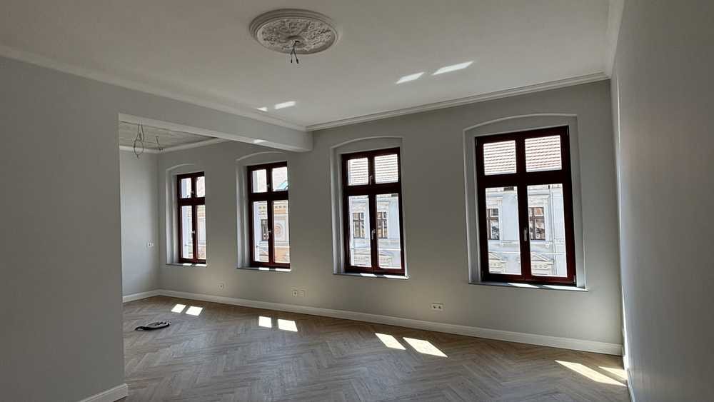 Bei dieser ansprechenden Immobilie handelt es sich um eine Wohnung im dritten Stock, die durch eine gehobene Innenausstattung besticht und zum 1.01.2026 bezogen werden kann. Das komplette denkmalgeschützte Mehrfamilienhaus wurde 2024/2025 stilecht, altersgerecht und energetisch saniert, gedämmt und mit einer Luft-Wärmepumpe und Photovoltaik ausgestattet. Zu dem hochwertig sanierten Objekt zählen neben drei attraktiven Zimmern nicht nur ein Badezimmer, sondern auch ein separates Gäste-WC mit ebenerdiger Dusche. Die Wohnung ist barrierefrei zugänglich und durch einen Fahrstuhl gelangen Sie bequem ins entsprechende Stockwerk. Eine Besonderheit ist, dass es nicht nur einen Balkon gibt, sondern auch den Garten am Haus den Sie zu Ihrer Erholung nutzen können. Praktischerweise gibt es für jede Wohnung auch einen Abstellraum, Kellerraum und Fahrradstellplatz. Hier finden Sie genügend Stauraum zur Aufbewahrung von Gegenständen. Im ganzen Haus wurde ein High Speed Glasfaseranschluss verlegt, der Ihnen den Medienverkehr sehr bequem macht. Ein privater Autostellplatz kann in unmittelbarer Nähe von unserem Nachbar angemietet werden.