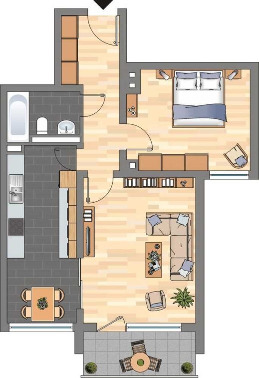 Diese gemütliche Wohnung befindet sich im 5.OG eines Mehrfamilienhauses, welche Sie bequem mit dem Fahrstuhl erreichen.