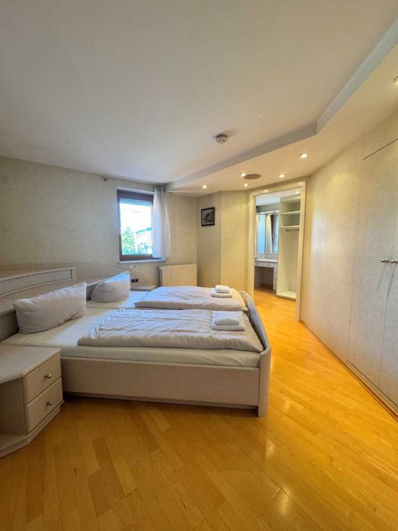 Die Wohnung umfasst 2,5 Zimmer: ein Schlafzimmer mit Ankleide, ein Wohnzimmer mit kleiner Bar sowie eine Küche mit Einbauküche und Essbereich. Das Badezimmer ist mit einem Whirlpool und einer bodentiefen Dusche ausgestattet. Eine Zentralheizung sorgt für angenehme Wärme. Insgesamt überzeugt das Apartment durch seinen gemütlichen und einladenden Charakter.