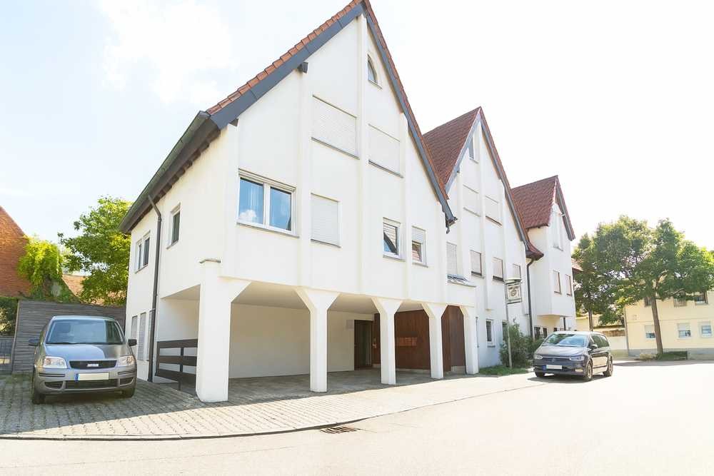 Beide Ebenen sind von einer freundlichen, hellen Atmosphäre und schönen Holzschrägen geprägt, die der Wohnung Wärme und Gemütlichkeit verleihen. Ein überdachter Stellplatz und ein Kellerraum runden das Angebot ab.