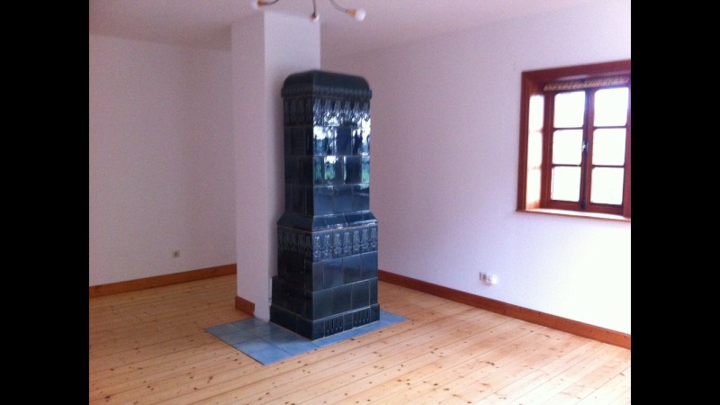 • Nord-Ost-Zimmer mit funktionstüchtigem antiken Kachelofen- – im Grundriss als Wohnraum bezeichnet, kann auch zum Schlafen genutzt werden