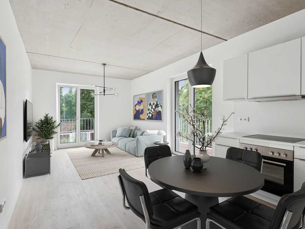 Diese gut geschnittene 3-Zimmer-Wohnung besticht durch einen hellen, offenen Wohn- und Essbereich mit moderner Einbauküche sowie zwei ruhige Schlafzimmer. Ein stilvoll ausgestattetes Duschbad und ein praktischer Flur sorgen für zusätzlichen Komfort. Besonders hervorzuheben sind die große Terrasse und der angrenzende Mietergarten, die ein attraktives Plus an Lebensqualität im Freien bieten.