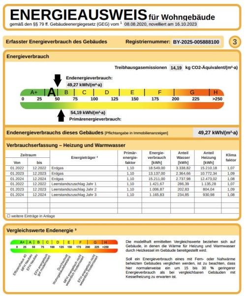 | Endenergiebedarf: | 49,27 kWh/(m²*a) |