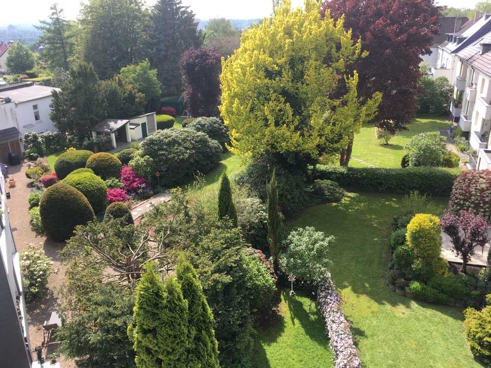 Der nicht einsehbare, sonnige Balkon lädt zum Verweilen ein mit einem fantastischen Blick in eine großzügig gestaltete Gartenanlage.