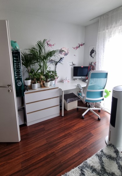 Die Wohnung verfügt über eine voll ausgestattete Küche (inkl. Einbauküche, Spülmaschine, Waschmaschine, Kühlschrank, Mikrowelle, Elektroherd, Backofen sowie Geschirr für 3 Personen), ein Schlafzimmer (Bett 1,80 m, 4-F Schrank, Bürostuhl/-tisch, 2 Kommoden, 3 Nachttische), ein Wohnzimmer (mit 2 Sofas, Bürostuhl/-tisch, 3 Bücherregalen sowie weiteren Schränken) und einen Balkon. Wir überlassen Ihnen alle Gegenstände und Möbel, die Sie für einen angenehmen Aufenthalt benötigen. Im Falle einer späteren unbefristeten Wohnungsübernahme kann Teil der Ausstattung gegen einen fairen Aufpreis übernommen werden.