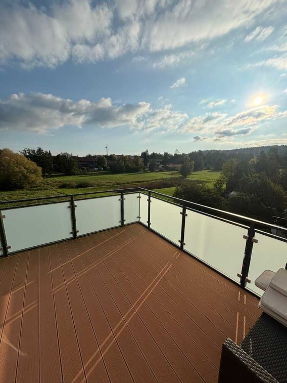 Die in 2024 neu errichtete Wohnung überzeugt durch eine großzügige Dachterrasse mit Blick ins Grüne, eine neue Einbauküche sowie einen PKW-Stellplatz und eigenen Kellerraum.