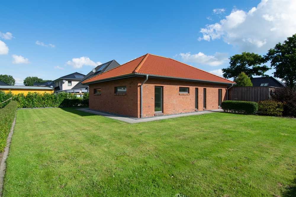 Bei dem neuwertigen Bungalow handelt es sich um eine attraktive, freistehende Immobilie. In den drei schönen Zimmern (zwei Schlafzimmer und eine großzügige, helle Wohnküche) können Sie sich nach Ihrem Geschmack einrichten und entfalten. Ein aktueller Bedarfsausweis ist erstellt. Eine Einbauküche steht Ihnen außerdem zur Verfügung. Das Haus wurde 2018 erbaut und wird durch eine Fußbodenerwärmung beheizt. Die Wohnräume sind mit einem pflegeleichten Designboden ausgestattet. Eine zentrale Lüftungsanlage mit Wärmerückgewinnung sorgt für kontinuierlich frische Luft in Ihrem neuen Zuhause. Über die Wohnküche gelangen Sie auf die großzügig angelegte Südterrasse.