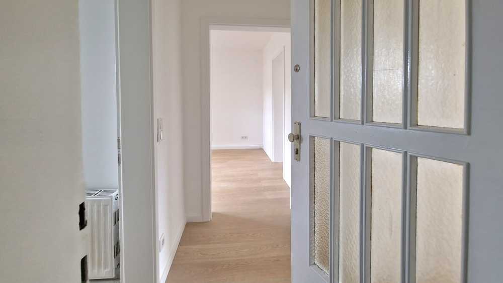 Die Wohnung wurde frisch renoviert und glänzt mit einem modernen Hybridboden in Holzoptik und -haptik �. Das Tageslichtbad mit Dusche sorgt für einen frischen Start in den Tag – die Duschabtrennung bringst Du einfach selbst mit. Die Küche ist groß genug für eine gemütliche Essecke �️, das Wohnzimmer ist direkt über die Küche erreichbar, und das Schlafzimmer liegt separat am Flur. Die Raumaufteilung eignet sich perfekt für Singles, Paare oder auch eine WG �.