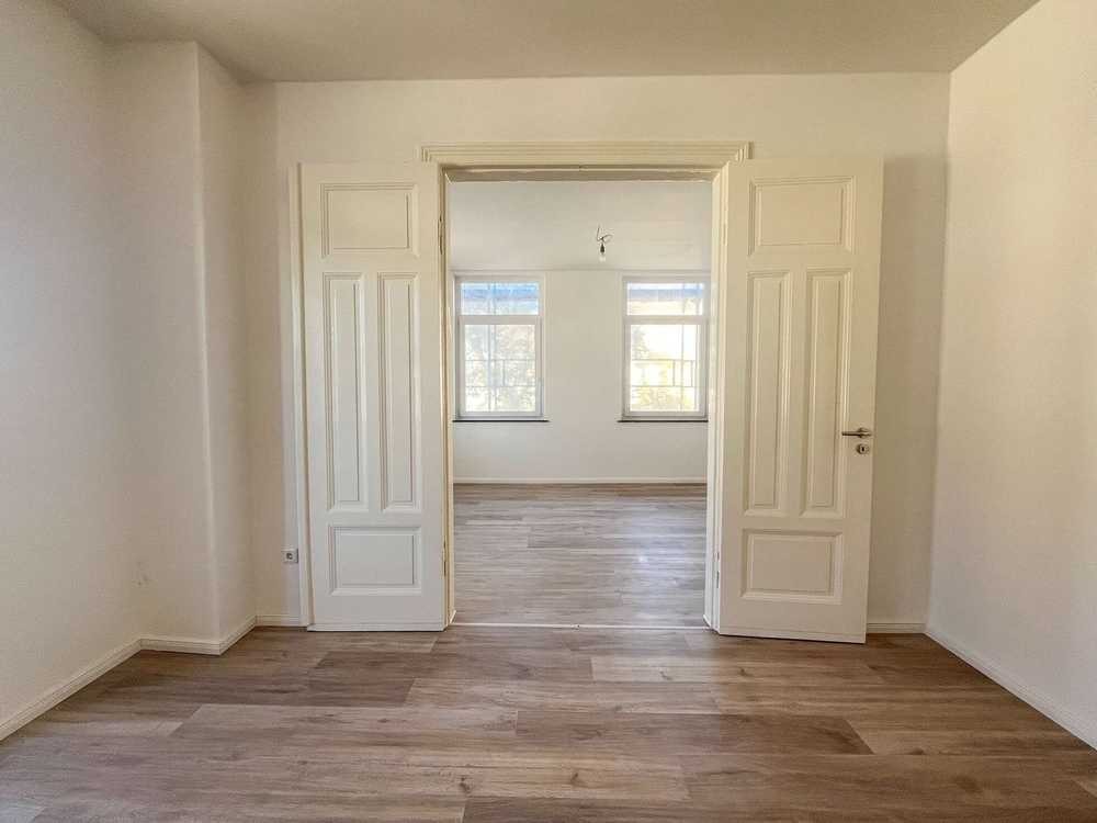 verfügt über ca. 90m² Wohnfläche, die sich auf Flur, Küche, Duschbad, 3 Schlafzimmer sowie 1 Wohnzimmer mit Durchgang zu einem zusätzlichen Zimmer verteilen sowie einen Balkon.