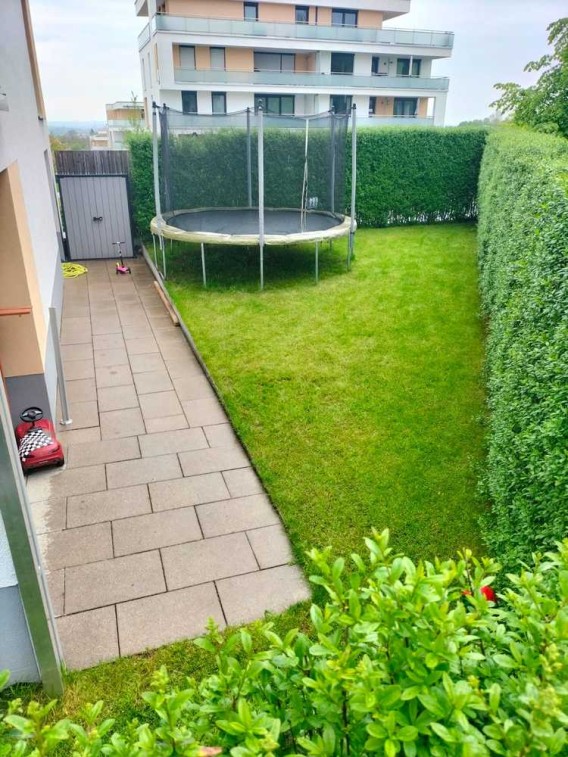 Die Wohnung verfügt úber einen sehr großen Wohn und Essenreich. Die Küche ist getrennt und mit einer hochwertigen EBK ausgestattet. Das Bad verfügt über eine Bodenlose Dusche und hat Tageslicht. In allen Wohnräumen erwartet Sie Parkettboden und Fliessen mit Fußbodenheizung, in sowie elektrische Jalousien. ca 20m2 der Terrasse ist überdacht außerdem ist das Gartengrundstück umzäunt und als Sichtschutz ist eine Hecke dabei.